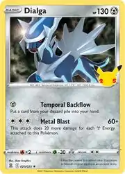 Dialga (Japanese: ディアルガ Dialga) is a Metal-type Basic Pokémon card. It is part of the Celebrations expansion.