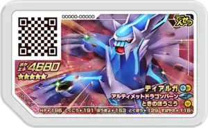 Dialga (Japanese: ディアルガ Dialga) is a Grade 5 Pokémon Ga-Olé disk. It is part of the fourth Ultra Legend set.