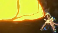 In Arceus and the Jewel of Life, it was revealed that the reason why Dialga and Palkia clashed in Alamos Town was because their dimensions, which are not meant to ever intersect, intersected due to Arceus preparing to awaken. As a result, Dialga believed that Palkia had invaded its territory, a mistake shared by Palkia. Sheena used her ability to summon Dialga to save Pikachu and Piplup and when Giratina showed up to attack Sheena used her powers to touch a Pokémon's heart to end the battle once and for all. Later, when Arceus arrived and prepared to eradicate humanity for its previous betrayal, Dialga, along with Palkia and Giratina, protects Ash and friends from Arceus's attacks, and uses its temporal abilities to send Ash, Dawn, Brock, and Sheena back in time to give them a chance to change the past to save the future. Dialga was then badly injured by the Alpha Pokémon alongside Palkia and Giratina, and exhausted due to time travel. Eventually, when Ash and the others had successfully changed the timeline for the better, Arceus healed Dialga and the others and Dialga returned to its own dimension to live peacefully once again.