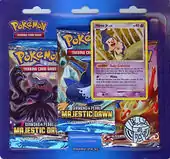 Promoting the Majestic Dawn expansion, Three Pack Blisters and Two Pack Blisters were released during the month of June 2008. Available in the Three Pack Blisters were either a Glameow promotional card, or Mime Jr. promotional card, two Majestic Dawn booster packs, one late EX Series booster pack, and a Lucario coin. The Two Pack Blisters contained a Cosmos Holofoil Manaphy promotional card, one Majestic Dawn booster pack, and one POP Series 6 booster pack.