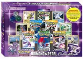 Released during the month of August 2008, the Diamond & Pearl Collection covers all six expansions released thus far in the Diamond & Pearl Series, containing one booster pack each from Diamond & Pearl, Mysterious Treasures, Secret Wonders, Great Encounters, Majestic Dawn, and Legends Awakened. The collection includes six Cosmos Holofoil promotional cards, including Turtwig, Chimchar, and Piplup from POP Series 6, previously available in the Starter Blister Packs, and three popular Supporter cards in the Modified format. The collection also includes three differently colored coins, each one featuring the Generation IV starters.