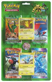 These packs were distributed internationally and available in June 2007. Due to the difference in content of the 2007 Spring Collector's Tins, these packs were conceived to make the Cosmos Holofoil variants of Turtwig, Chimchar, and Piplup available in Western countries outside North America. The Blister packs also come packaged with a mixture of three late EX Series booster packs and an Energy coin in varying colors.
