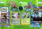 As one of the last Diamond & Pearl Series items, the Classic Trio Boxes, released on January 17, 2009, once again make the Cosmos Holofoil prints of the three Sinnoh starters available again. Originating from Diamond & Pearl, these cards were the first Generation IV promotional cards released almost two years prior. Preliminary information suggested that these items were going to be tins, as opposed to the final card boxes. Each box contains one of the three promotional cards, plus two late EX Series booster packs, and one Diamond & Pearl Series booster pack.
