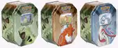 The Diamond & Pearl Collector's Tins were released in September 2007 and include alternate art reprints of the three Pokémon LV.X that debuted in the Diamond & Pearl expansion: Torterra, Infernape, and Empoleon. Preliminary release material suggested that the tins were to include the non-LV.X versions of these cards, with no alterations to those found normally in the main expansion. The contents of the tins differed between the North American release and those released internationally. The North American release came packaged with two Mysterious Treasures booster packs, and two Diamond & Pearl booster packs. The international release however, included four Diamond & Pearl booster packs, due to the different release schedule of Mysterious Treasures outside North America.