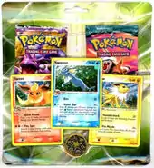 Quietly released in stores such as Target during June 2007, and subsequently available via several online retailers, the Enhanced Value Pack contains Cosmos Holofoil versions of Flareon, Jolteon, and Vaporeon from POP Series 3. All three could be obtained in separately packaged Blister Packs during the EX Series. The pack also contains two booster packs, both from a selection of late EX Series expansions.