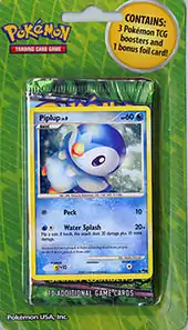 Available at stores such as Meijer and Wal-Mart in May 2008 were the Starter Blister Packs. Featuring the POP Series 6 iterations of the Generation IV starter Pokémon, these packs contained either a Turtwig, Chimchar, or Piplup with the Cosmos Holofoil treatment, as well as three early Diamond & Pearl Series booster packs.