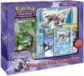 Completing the legendary trio of Pokémon featured in The Rise of Darkrai in promotional box form, the Palkia Premium Box was also released on August 15, 2008. The box includes both a regular sized and Jumbo Black Star Promotional card of the Spatial Pokémon, Palkia, as well as one Diamond & Pearl booster pack, one booster pack from either Secret Wonders or Great Encounters, and a Theme Deck from either Diamond & Pearl or Mysterious Treasures. Much like the Dialga Premium Box, the Jumbo promotional card was available as either a Mirror Holofoil or Cracked Ice Holofoil.