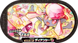 Diancie (Japanese: ディアンシー Diancie) is a Grade 6 Pokémon Mezastar tag. It is part of the third set.