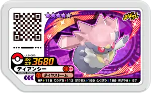 Diancie (Japanese: ディアンシー Diancie) is a Grade 4 Pokémon Ga-Olé disk. It is part of the fifth Ultra Legend set.