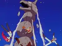 Rhydon's horn spins like a drill and it digs underground using it to dig. | ||