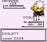 On the turn that Dig is selected, the user will dig underground and become semi-invulnerable, where the only attacks it cannot avoid are Bide, Swift, and Transform. On the following turn, Dig will do damage, PP will be deducted from it, and it will count as the last move used. Once Dig is selected, the user will not be able to switch out until it is disrupted or fully executed.