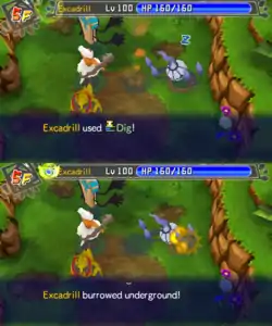 - In Generation I, when Dig is used while standing on top of a warp tile, the spinning animation upon using the move is the same as the warp tile animation.