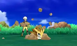 Linoone digs a hole into the ground using its claws. It then comes up underneath the opponent and attacks it. | ||