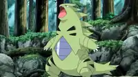 | Dirk's Tyranitar serves as his main Pokémon alongside his Escavalier. It was first seen battling Mewtwo and managed to injure it before its Hyper Beam accidentally caused a rock slide and buried it under rubble. Later, it was used to battle Mewtwo a second time, but its Mega Evolution allowed it to get the upper hand. It was freed from Dirk's control and left its Trainer when Mewtwo crushed its Poké Ball with Psychic, effectively releasing it.