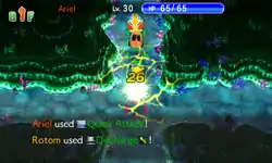 Rotom releases light blue or yellow electricity from its body at the opponent. | ||