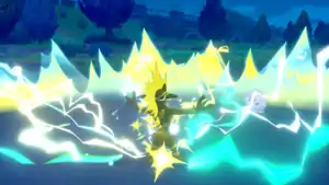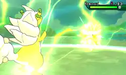 | Zebstrika releases multiple bolts of light blue electricity from its mane at the opponents around it. | |||