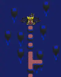 Battling Giratina here is the only instance in the Generation IV games where the battle scene does not include a platform graphic underneath the Pokémon.