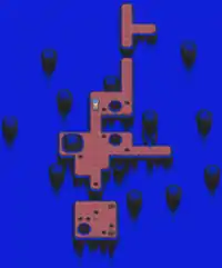 The world's rust-colored landmass is separated into tiny islands. Trees are spiky and incredibly tall, much like giant kelp. Beneath the floating land, there is a spinning whirlpool of spatial clouds.