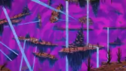 The Distortion World appeared in The New World, where Cyrus was taken there by Giratina after his failed attempt to control Dialga and Palkia at the Spear Pillar. Cyrus realized that the Distortion World was like the emotionless world he had attempted to create, thus he decided to stay there. He sent an audio message to Saturn, telling him to not come looking for him.