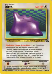 Ditto (Japanese: メタモン Metamon) is a Colorless-type Basic Pokémon card. It is part of the Fossil expansion.