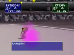 Kangaskhan holds her arms out in a 'T' formation, spins around, and hits the opponent, or Kangaskhan punches the opponent and the opponent becomes confused. | ||