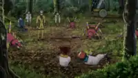 Although he was able to hold out against his enemies for a lengthy period of time, Zed was ultimately defeated when Ash's Pikachu destroyed the mech's control system using Iron Tail. He tried to flee from the scene of the battle but was spotted by Koko, who gave chase and cornered him on a fallen tree overlooking a river. He and Koko got into a physical struggle and Zed tried to escape by jumping into the river, only for Koko to ensnare him with a vine, leaving him trapped hanging over the water.