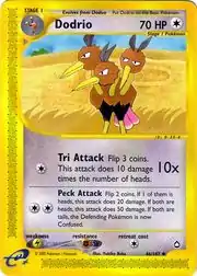 Dodrio (Japanese: ドードリオ Dodorio) is a Colorless-type Stage 1 Pokémon card. It is part of the Aquapolis expansion.