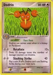 Dodrio (Japanese: ドードリオ Dodorio) is a Colorless-type Stage 1 Pokémon card. It is part of the EX Hidden Legends expansion.
