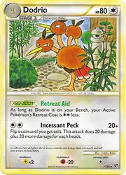 The Retreat Aid Poké-BODY was first seen as a Pokémon Power on Jungle Dodrio. This card's Pokédex entry comes from Pokémon HeartGold.