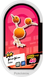 Doduo (Japanese: ドードー Dodo) is a Grade 2 Pokémon Mezastar tag. It is part of the first set.