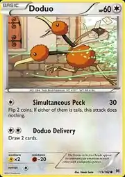 Doduo (Japanese: ドードー Dodo) is a Colorless-type Basic Pokémon card. It is part of the BREAKthrough expansion.