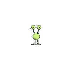 Due to its almost non-existent wings, it cannot fly very well. However, it has developed legs that make it a powerful runner. Reaching speeds of 60 mph (96.5 km/h), it energetically strides across the plains leaving large 4 inch (10.6 centimeter) deep footprints behind it. By raising and lowering its two heads, it is better able to maintain balance while running. Doduo lives in wide open plains, grasslands, and savannahs.