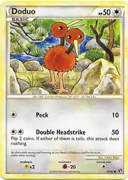 Peck is a move in the Pokémon games that Doduo can learn. This card's Pokédex entry comes from Pokémon HeartGold.