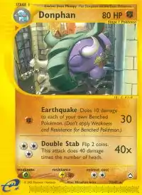 Donphan (Japanese: ドンファン Donphan) is a Fighting-type Stage 1 Pokémon card. It was first released as part of the Aquapolis expansion.