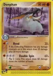 Donphan (Japanese: ドンファン Donphan) is a Fighting-type Stage 1 Pokémon card. It is part of the EX Ruby & Sapphire expansion.