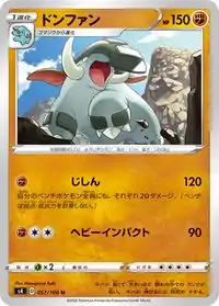 Donphan (Japanese: ドンファン Donfan) is a Fighting-type Stage 1 Pokémon card. It was first released as part of the Vivid Voltage expansion.