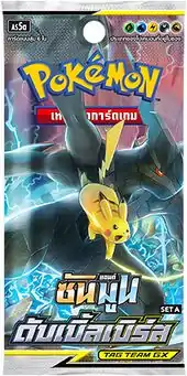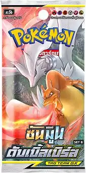 Double Burst was first released on February 18, 2020 in Taiwan and Hong Kong, utilizing the AS set prefix instead of the previous AC prefix. It was subsequently released in Thailand on February 27, 2020. This set is composed of cards sourced from the Japanese Tag Bolt and Double Blaze expansions, as well as the associated Night Unison, Full Metal Wall, and GG End subsets, focusing heavily on Tag Team Pokémon-GX. It is split into two sets, Set A and Set B, each of which focuses on specific types. Set A features Grass-type, Water-type, Lightning-type, Darkness-type, and Dragon-type Pokémon, while Set B features Fire-type, Psychic-type, Fighting-type, Metal-type, Fairy-type, and Dragon-type Pokémon. The booster pack art for each set features specially commissioned illustrations by Mitsuhiro Arita and are based on the those from the Japanese Tag Bolt and Double Blaze expansions. Each pack contains six cards.