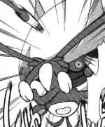 Both of Scizor's arms or claws glow purple and it sticks its claws out in front of it. It then flies into the opponent claw-first, or both of Scizor's claws glow purple and it hits the opponent once with each claw. | ||