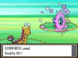 | Girafarig's lower front legs glow light purple and it hits the opponent with them one at a time. | |||