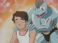| Anna has a Machoke which she uses in her health clinic to use its strength for Chiropractic massages. It first appeared massaging a patient.