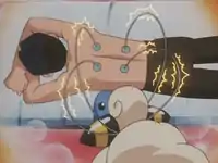 | Anna has a Mareep which she uses its electricity to run a low voltage muscle stimulator. It first appeared helping a patient, relaxing his back.