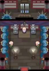 In Pokémon HeartGold and SoulSilver, after the player battles Silver at Mt. Moon, they can participate in a Multi Battle with him against Lance and Clair here. Also, in these games, if the player receives the Rising Badge from Clair and then leaves the Dragon's Den with Dig, Teleport, or an Escape Rope, then they must return to her Gym in order to collect the TM.