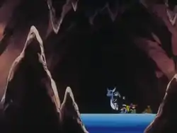 The Dragon's Den appeared in Debonaire Dragonair. Clair encountered and battled Suicune here, but failed to defeat and catch it. According to Clair, only the Pokémon living on the site with her family are allowed here.