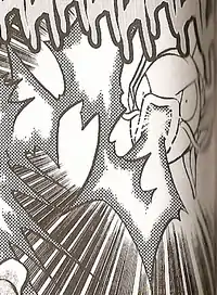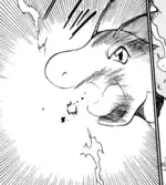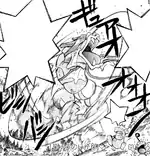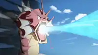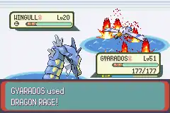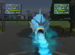 Gyarados sends a swirling cyclone towards the opponent, or Gyarados fires a ball of fire from its mouth at the opponent. | ||