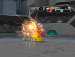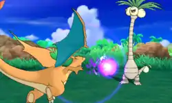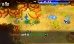 The flame on Charizard's tail grows to a huge size. It then forms a ball of fire in its mouth and releases a fiery inferno at the opponent. Sometimes, its eyes flash white before using the move; or, Charizard releases a ball of orange energy from its mouth on the opponent. | ||