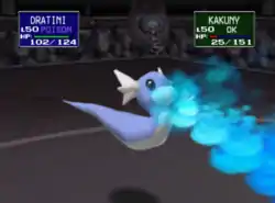 The orb on Dragonair's neck glows and it sends a swirling cyclone towards the opponent. | ||