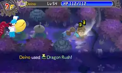 In Explorers of Time, Darkness and Sky, Dragon Rush is a move with 40 base power, 8 PP and 80% accuracy. The user attacks enemy in front, possibly inflicting cringing.