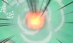 Dragonite's body becomes surrounded in a light blue orb with white streaks or its horn glows blue and releases a blue, dragon-shaped energy that covers its body. It then slams into the opponent with full force. | ||