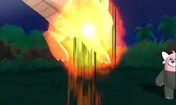 Flygon's antennae glow light blue and its body becomes surrounded in a light blue aura with lighter blue stripes of aura on the outside. Flygon then slams into the opponent. | ||