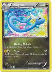 Healing Melody's Japanese name is that of Sweet Song, a Warrior Skill later introduced in Pokémon Conquest. Slam is a move in the Pokémon games that Dragonair can learn. This card's Pokédex entry comes from Pokémon Black and White.